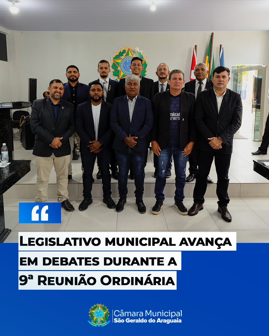 A 9ª Reunião Ordinária reafirma o compromisso da Câmara Municipal em trabalhar de forma ética, transparente e participativa, sempre priorizando o bem-estar e a qualidade de vida de todos os cidadãos.